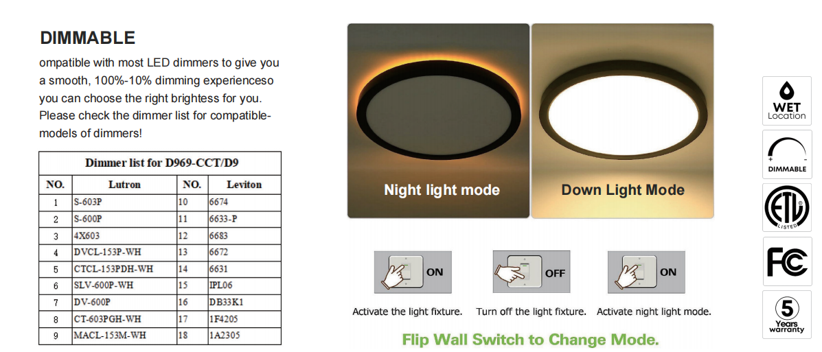 Designed for continuous dimming down to 10% when paired with a standard 120V electronic low-voltage (ELV) dimmer, this LED flush mount ceiling light ensures smooth, flicker-free performance.