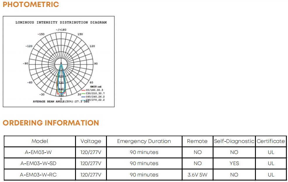 Exit Sign Light Two Head Emergency Light,Thermoplastic ABS housing,Super bright SMD LED, 120/277VAC 60HZ FEATURES Injection-molded thermoplastic ABS housing UL-94V-0 flame rating, fire-r...