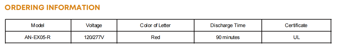 Led Exit Sign Emergency Light EX05 Series LED Exit Sign Emergency Light with Battery Backup - Black + Red, Injection Molded Thermoplastics ABS Housing, Nickel Cadium Battery w/ 90min Backup Time 120/2...
