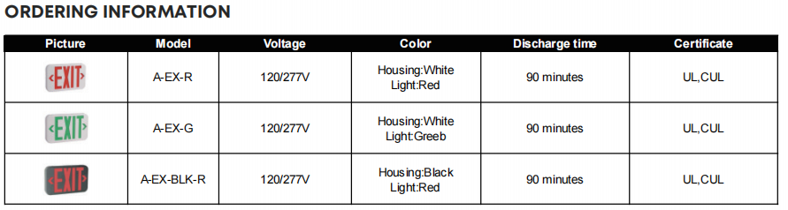Ensure building safety and code compliance with this high-performance LED Exit Sign featuring dual voltage 120/277V input and dependable 90-minute emergency backup. Designed with injection-molded thermoplastic ABS housing and UL-94V-0 flame rating, this fire-resistant exit light delivers durability and long-term reliability in commercial and industrial environments.